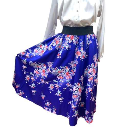 This flared skirt luxuriously uses an entire bolt of “Shoken,” the highest-grade pure silk among Japanese kimono fabrics.