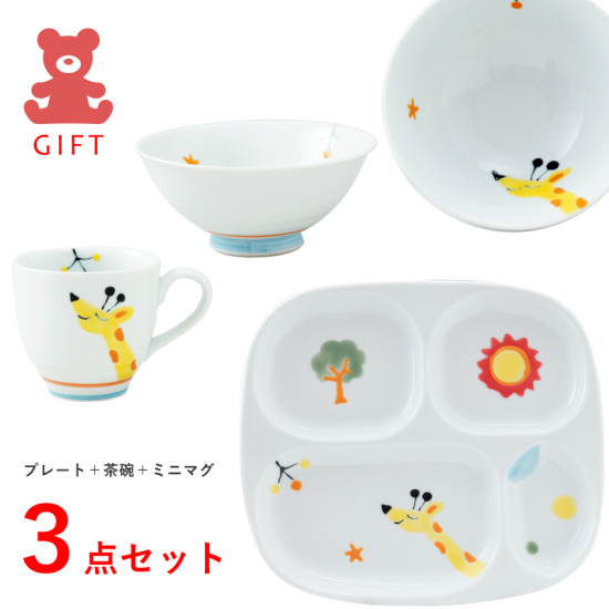A cute animal series that’s adorable just to look at — this 3-piece gift set features KIRIN-kun (the giraffe). The hand-painted giraffe is very charming and will make mealtime fun and full of smiles every day. This tableware brings happiness to your dining table.