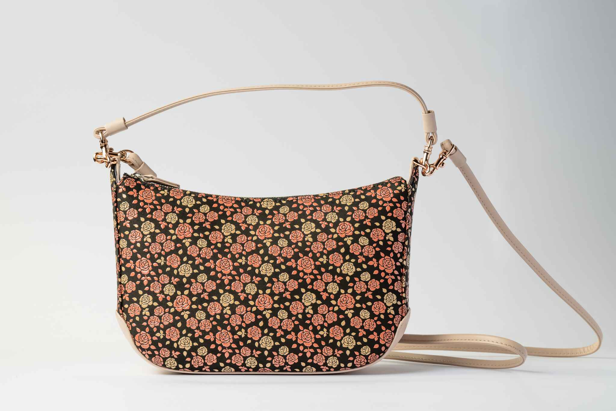 A versatile “2-way” pochette with a detachable shoulder strap, allowing it to be used as a compact handbag as well.