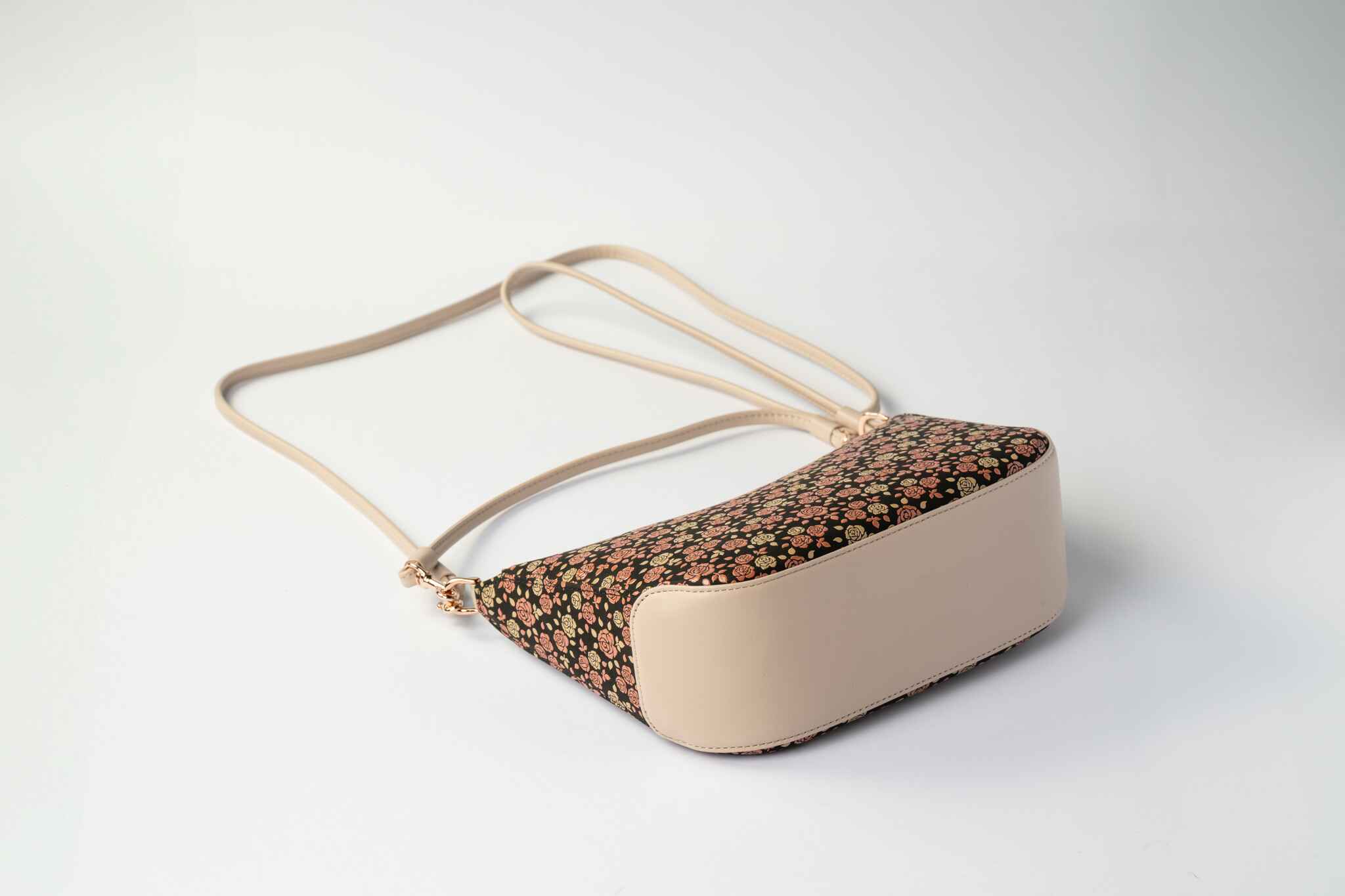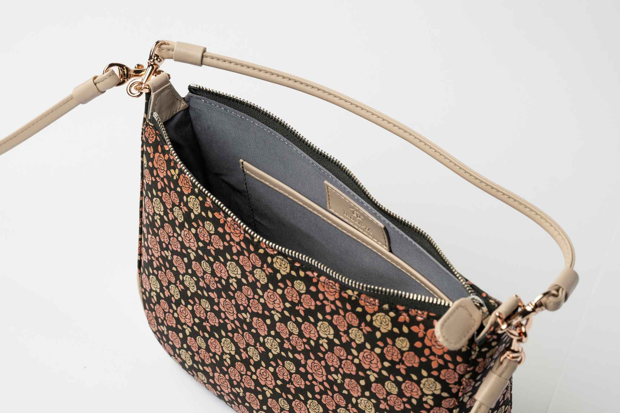The pink-beige strap is complemented by specially selected rose gold hardware, enhancing its delicate charm. Additionally, the gusseted bottom provides ample storage capacity while maintaining a compact form.