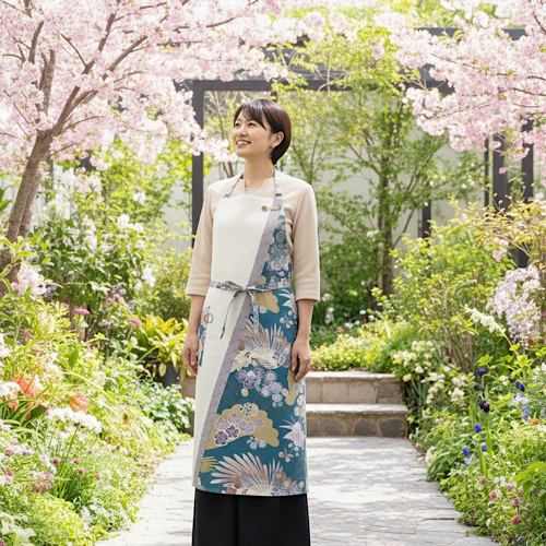 Details such as kiriko-inspired buttons and Sanada-himo reflect a refined Japanese aesthetic while maintaining true practicality. Adjustable shoulder straps and a versatile two-way waist-wrap style allow it to be worn in multiple ways, adapting beautifully to the wearer.
