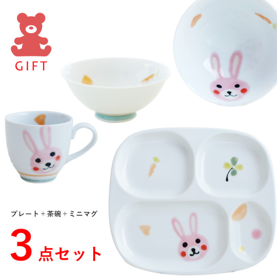 “Rabbit” Gift 3-Piece Set – Rice Bowl / Plate / Mug | Includes Wrapping