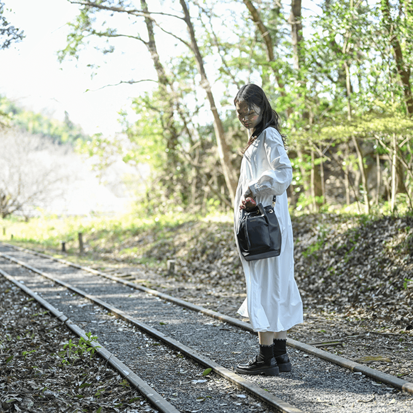 Made from “Apple Leather”(a sustainable leather alternative derived from discarded apples). Apple leather is a lightweight, durable, environmentally friendly and sustainable material. Despite its compact size, it can easily store a long wallet or even a drink bottle, making it suitable any outing. It is a perfect casual daily bag, but can also just as easily be styled up for the most formal of occasions. It has a unique 2-way design allowing the user to use it as a shoulder bag or a short-handled handbag. It is highly versatile and can be integrated with a variety of styles. There is a deep purse pocket at the front where you can store essentials such as a smartphone or wallet, and an open pocket on the inside.