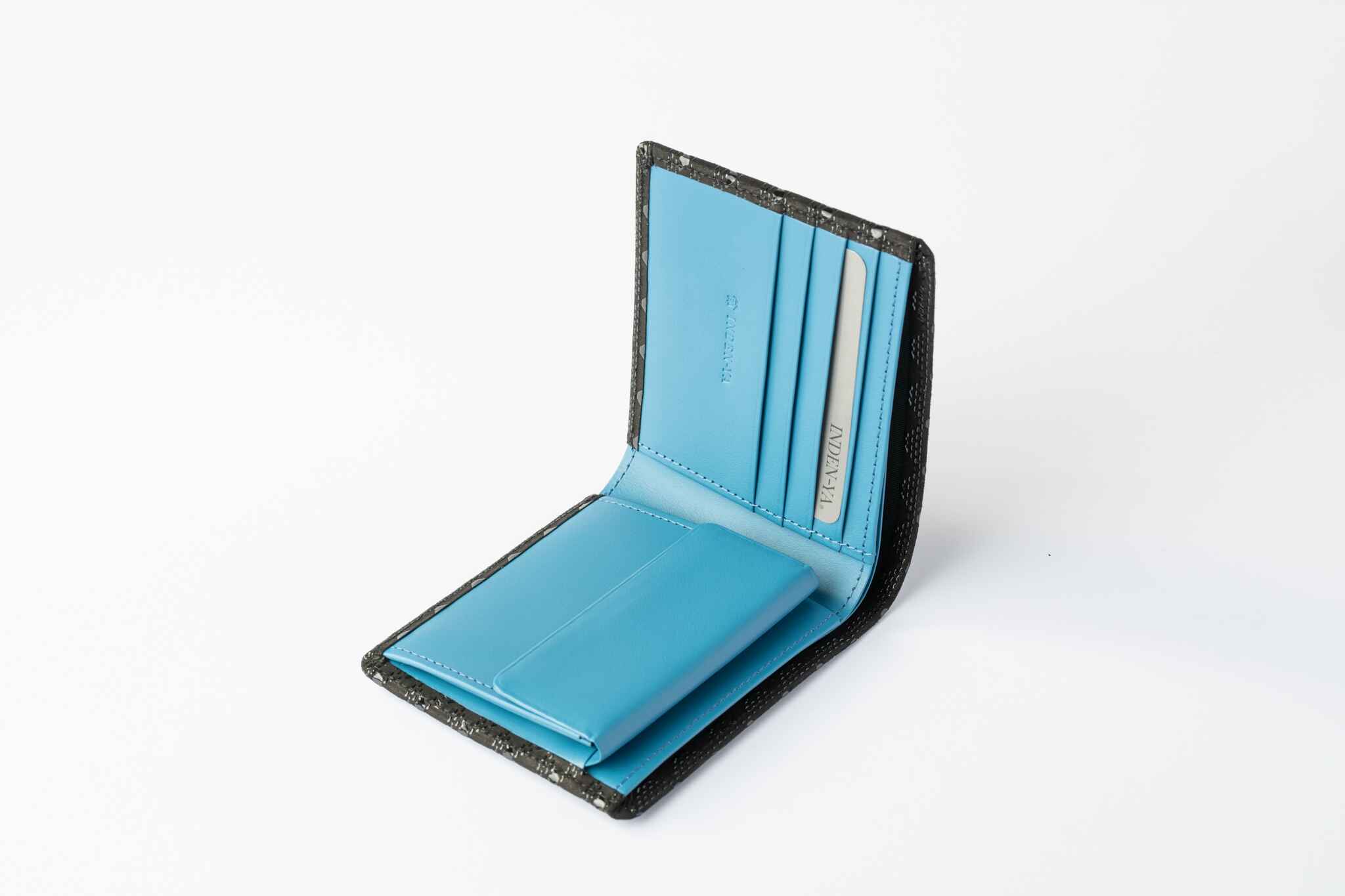 A bi-fold wallet designed to fit easily into the pockets of jackets or suits.