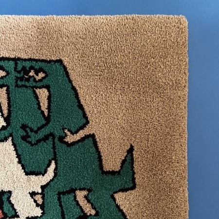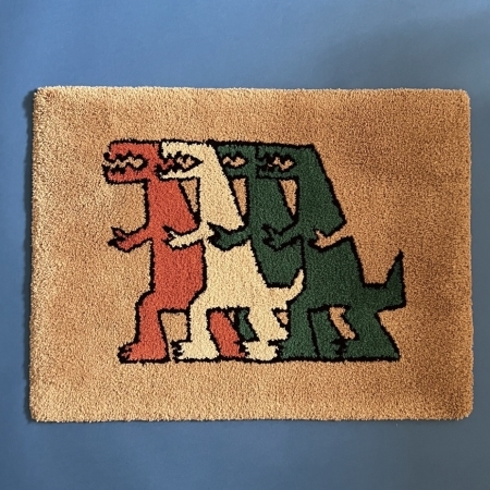 The tufted rug mats featuring distinctive dinosaur designs are each handmade with care. With a moderately soft pile, they feel great to the touch and can be enjoyed as a fun and artistic addition to your entryway or living room decor.